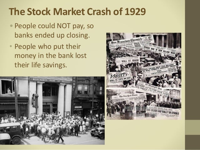 People invest large amounts of money in the stock market. After the stock market crash of 1929, businesses lost money in the stock market and had to lay off workers. The workers who were laid off could not afford to pay their bills or care ... Get Document